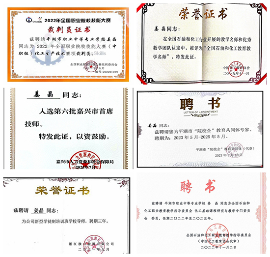 作為全國石化行業教育教學名師、嘉興市首席技師等,她構建“崗課賽證”融通體系,實現學校化工專業國賽首金突破,新賽項獲獎率100%。她參與大賽規程制定,以賽促教,擔任全國石油和化工職業教育教學指導委員會化工基礎課程研究與教學專門委員會委員。