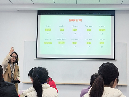 課程伊始,葛秀華副教授以“英語數(shù)字”為切入點(diǎn),通過快速問答、情景對(duì)話等方式帶領(lǐng)學(xué)員回顧上節(jié)課內(nèi)容,幫助大家鞏固英文數(shù)詞的發(fā)音與用法。“從‘one’到‘one hundred’,這些數(shù)字在日常交易、游客接待中太實(shí)用了!”余村商戶王大姐邊記筆記邊感慨。