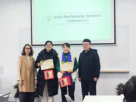 為提升學(xué)習(xí)趣味性,活動(dòng)設(shè)置了“單詞接龍”“你畫我猜”等游戲環(huán)節(jié),村民們分組競賽,笑聲與掌聲此起彼伏。同時(shí),來自天荒坪成校的志愿者全程跟班輔導(dǎo),針對(duì)基礎(chǔ)薄弱的學(xué)員進(jìn)行“一對(duì)一”糾音,確保每位參與者都能跟上節(jié)奏。“老師講得細(xì)致,志愿者也很有耐心,以前不敢開口說英語,現(xiàn)在能簡單交流了!”剛獲得“今日最佳團(tuán)隊(duì)”成員的村民李大哥舉著榮譽(yù)證書笑道。