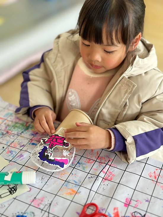 活動室中,一場創意手工之旅同步開啟。孩子們用馬克筆在紙杯上繪出心中的冬日圖景,再精心裝點雪花、小玩偶、圣誕樹等小物件,一個個獨一無二的大寒水晶球就此誕生。透明的球體內,仿佛藏著一整個冬日童話,孩子們端詳著自己的作品,臉上洋溢著滿滿的幸福與喜悅。