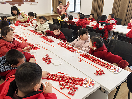 活動(dòng)現(xiàn)場(chǎng),孩子們化身為“小小手藝人”,在黨員志愿者和工作人員的耐心引導(dǎo)下,親手將一顆顆晶瑩的糖果串連起來(lái),再貼上可愛(ài)的馬年卡通頭像,制作成一個(gè)個(gè)小巧喜慶、可賞可食的“糖果鞭炮”。從“串”起甜蜜到“裝點(diǎn)”色彩,孩子們?cè)诎踩腥さ牟襟E中充分發(fā)揮想象力,完成了屬于自己的新春作品。