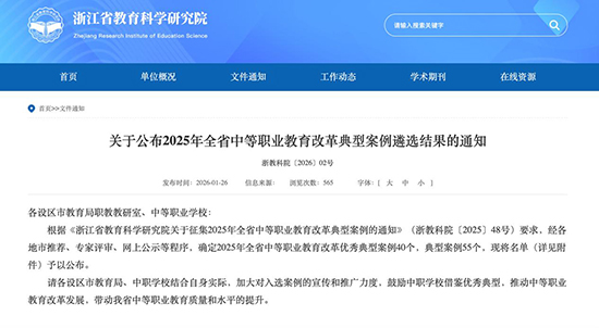 1月26日,浙江省教育科學研究院公布2025年浙江省職業教育改革典型案例入選名單,杭州市中策職業學校報送的兩項案例雙雙獲評“優秀典型案例”。