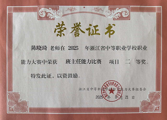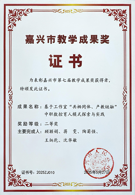 教師競賽實力的提升有效反哺學生培養。學校系統構建“琢匠學堂”培養體系,學生技能培養成效顯著:全年累計獲得國家級行業賽獎項17項、省級(含行業賽)29項、市級101項,尤其在嘉興市中職學校第二十屆技能節中斬獲12金、17銀、19銅,實現獲獎數量與質量雙突破。