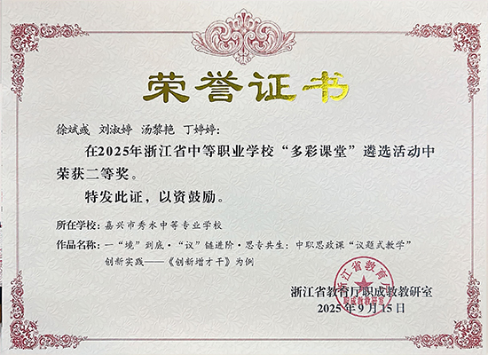 過去一年,秀水中專教師在各級各類競賽中捷報頻傳,展現出“手上有絕活、教中顯真功”的匠師風采。在“教學能力”“信息化說課”“多彩課堂”“班主任能力”等比賽中展現出強勁實力,獲市級一等獎7項、二等獎13項、三等獎18項,省級獲獎4項。