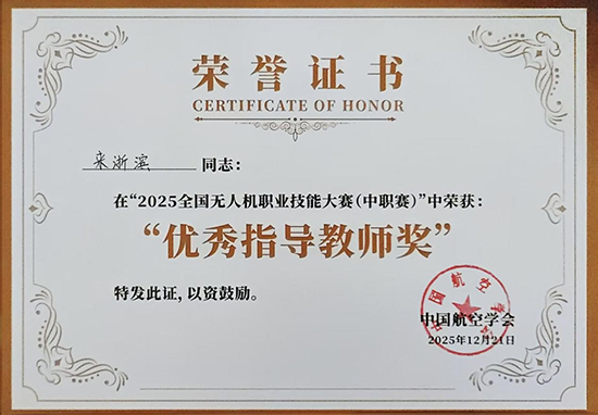 不僅如此,作為學校汽修專業(yè)的新生力量,來老師積極響應(yīng)國家大力發(fā)展新質(zhì)生產(chǎn)力的號召,緊扣時代脈搏,把研究領(lǐng)域擴展到低空領(lǐng)域。從2023年起,他系統(tǒng)研習無人機領(lǐng)域知識與技能,將所學融入教學實踐。他與國家特級技師任城龍老師合作,帶領(lǐng)學生參加無人機類全國競賽,獲得全國一等獎2項、二等獎3項,省級一等獎4項、二等獎5項。