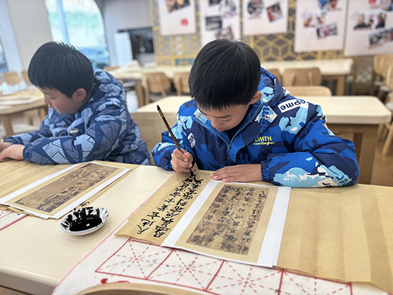 《真草千字文》筆法精熟,氣韻飛動,是書法史上承前啟后的經典法帖。書法課以此為范本,讓孩子們在筆墨方寸間邂逅傳統(tǒng)美學。