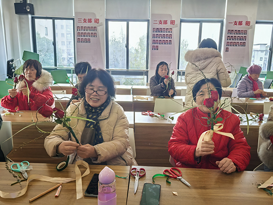 1月的非遺花藝體驗(yàn)活動(dòng)同樣精彩紛呈。非遺老師邢晗從中國傳統(tǒng)插花三千余年的歷史源流切入,詳解其“自然美、意境美、線條美、整體美”的核心特質(zhì)與“起把宜緊,瓶口宜清”的古法技藝。結(jié)合社區(qū)空港特色與居家生活場(chǎng)景,老師引導(dǎo)居民將生活感悟融入創(chuàng)作,玫瑰、菖蒲、南天竹等時(shí)令花材在大家手中煥發(fā)生機(jī),一件件獨(dú)具韻味的花藝作品相繼誕生。居民在修剪搭配中體會(huì)美學(xué)真諦,在相互欣賞中增進(jìn)情誼,讓花藝美學(xué)真正走進(jìn)生活。