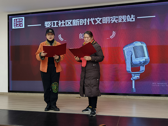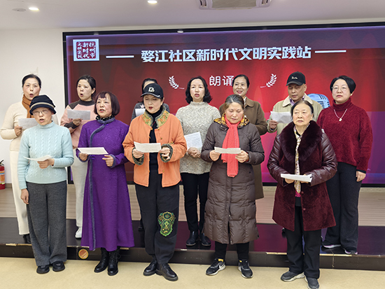 近日,杭州市上城區(qū)望江街道社區(qū)學(xué)校婺江社區(qū)新時代文明實(shí)踐站陣陣?yán)世蕰暸c熱烈掌聲,為期八節(jié)的社區(qū)公益朗誦班在溫馨的結(jié)業(yè)儀式中落下帷幕。在辭舊迎新的特殊時節(jié),二十余名朗誦愛好者以聲音為伴,以經(jīng)典為媒,共同營造了充滿書香與溫情的社區(qū)年味。