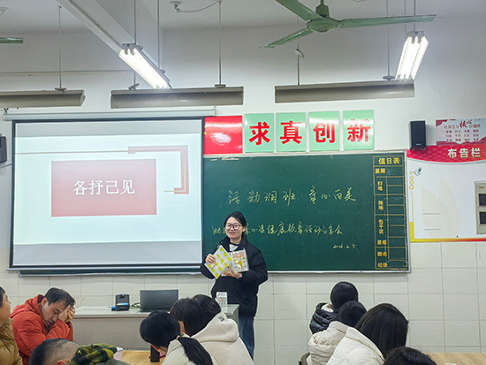 高考部探討德育力量對學業成績的支撐作用。潘增軍、陳雪艷兩位老師立足班級學業數據的穩步提升,系統分享將“工匠精神”“家國情懷”等核心價值觀融入高三班級管理的具體路徑。隨后,與會教師聚焦“如何與動力不足的學生有效對話”這一典型情境展開深度研討。