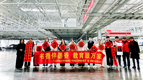2月10日,師生們的送福腳步來到了鐘埭街道長城汽車平湖分公司的生產車間。作為學院“教育共富”下鄉活動的重要組成部分,學院老年開放大學書法班的師生們將書畫桌案搬到了企業生產一線。活動現場紅紙鋪展,墨香四溢,師生們熱情高漲,揮毫潑墨,筆走龍蛇。一個個蒼勁有力或靈動秀美的“福”字,一副副寓意吉祥、滿載祝愿的春聯躍然紙上。短短時間,三百多幅飽含深情厚誼的春聯和“福”字作品新鮮“出爐”,贈予企業員工。職工們手捧油墨未干、字跡飄香的春聯,臉上洋溢著幸福的笑容,感受到了來自學院的誠摯關懷與新歲祝福。同時,學院招生團隊也將學歷提升的新政策送到企業一線,真正做到了教育服務下沉,助力區域共富。