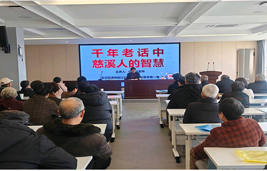 開學典禮簡樸而隆重,標志著宗漢社區教育中心2026年春季老年教育系列活動正式拉開帷幕。為豐富老年學員精神文化生活,傳承本土優秀文化,典禮結束后,宗漢社區教育中心特別邀請杜松根老師,為大家帶來《千年老話中的慈溪人智慧》專題文化講座。