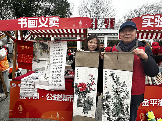3月3日,由平湖市社會(huì)工作部、老干部局和市團(tuán)委組織的“志愿之光映平湖 雷鋒薪火暖人心”——2026年平湖市“3·5”學(xué)雷鋒志愿服務(wù)主題月啟動(dòng)儀式在鐘埭櫻花小鎮(zhèn)舉行。書(shū)法班龔國(guó)銘老師,學(xué)員顧國(guó)英、鐘志鴻、何鑫華等在會(huì)場(chǎng)專(zhuān)設(shè)“書(shū)畫(huà)義賣(mài)”攤位,亮出一幅幅精美的書(shū)法國(guó)畫(huà)作品,給活動(dòng)增添了濃厚的傳統(tǒng)文化氣息,觀(guān)摩者絡(luò)繹不絕。義賣(mài)活動(dòng)所得全部捐獻(xiàn)給平湖市慈善總會(huì)。