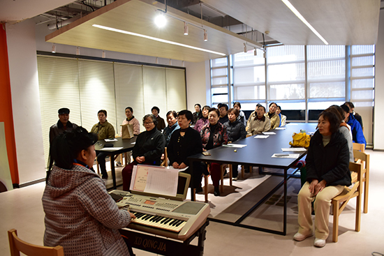 聲樂(lè)合唱課“吸氣——呼氣——預(yù)備——起——”教室里,鋼琴聲緩緩流淌,學(xué)員們的歌聲隨之升起。從發(fā)聲練習(xí)到分聲部配合,從咬字吐氣到情感表達(dá),張老師耐心地帶著大家一點(diǎn)點(diǎn)打磨。在這里,有曾經(jīng)的合唱團(tuán)領(lǐng)唱人,也有從不敢開(kāi)口的“小白”。