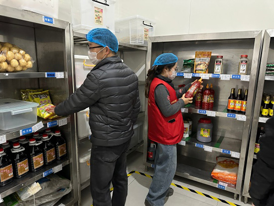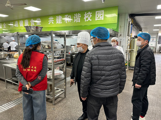 走訪中,黨員教師們按照食堂衛(wèi)生管理規(guī)范,佩戴口罩、帽子,有序查看食堂各功能區(qū)域。重點檢查操作間、食材庫房環(huán)境衛(wèi)生,細(xì)致核查設(shè)備運行與維護(hù)情況,并圍繞食品安全責(zé)任落實、原材料采購與儲存、餐飲具清洗消毒等關(guān)鍵環(huán)節(jié)進(jìn)行認(rèn)真核驗。
