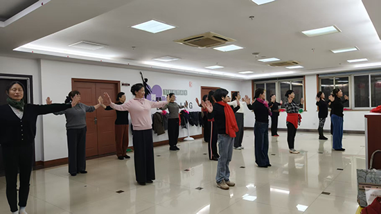 另一邊的舞蹈教室里,阿姨們身姿輕盈,抬手、伸展、轉(zhuǎn)身,每一個動作都透著古典韻味。