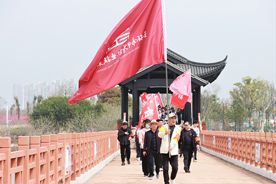 隨著出發指令的下達,毅行活動正式開始。黨員先鋒隊的教師率先邁出堅定步伐,走在隊伍最前方領路。毅行隊伍從學校東門有序出發,沿綠道向分水山方向進發,全程約10公里。為確?;顒影踩行?,學校在沿線關鍵路段安排了多名工作人員值守,尤其在紅綠燈路口等重要節點,均有專人負責引導與安全保障。