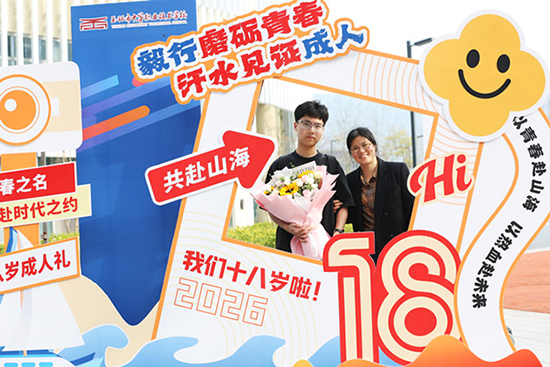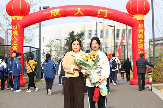 毅行結束后,學生從西門有序通過“成入門”進場,家長們為孩子獻上鮮花和成人禮物,象征著邁入人生新階段。活動現場還設置了簽名墻和合影區,同學們紛紛簽名留念,用鏡頭定格這一難忘時刻。