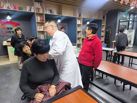講解過程中,陳醫師還與現場老人積極互動,耐心解答大家提出的各類健康疑問,并向每位老年免費發放了中藥泡腳包。培訓尾聲,陳醫師為有需求的老人提供了免費現場推拿服務,專業的手法讓老人們直呼“舒服”,現場氛圍融洽熱烈。