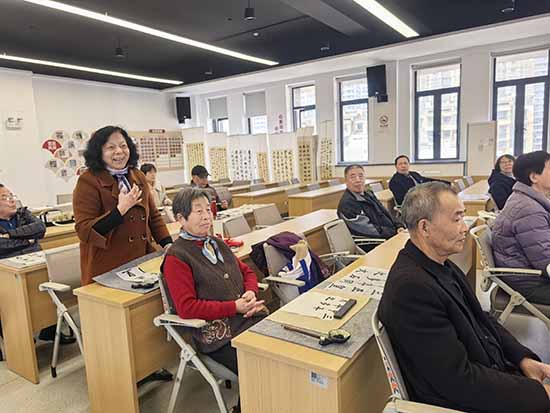 課堂上,處處可見老有所學、老有所樂的生動畫卷。書法教室內,墨香氤氳,老人們執筆凝神,在橫豎撇捺間品味中華文化的靜氣與風骨;越劇課堂里,絲竹悠揚,學員們跟隨著老師的節奏,一字一句、一顰一笑間盡顯戲曲藝術的婉轉韻味;太極課堂上,身形沉穩,銀發長者以拳會友,在起承轉合中感受身心合一的和諧之美。這不僅是一次次課程的有序開展,更是一幅幅鄰里守望、互學互助的溫情圖景。