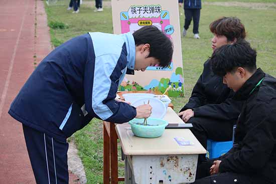 相較于個人項目的“勇者獨奏”,團體項目更彰顯青春共鳴與班級凝聚力。兩人三足、立定跳遠接力、極速三子棋、接力乒乓球等項目中,參賽隊員分工協作、默契配合,將個人力量融入團隊之中。賽場上,隊員們相互鼓勵、彼此支持,成功時擊掌相慶,失誤時互相安慰,讓競技超越了勝負本身,成為培育同窗情誼、增強團隊信任的生動課堂。