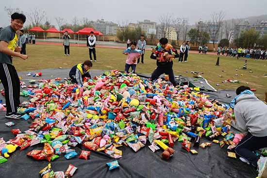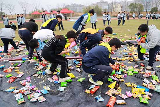 馬拉松結(jié)束后,“高三搶分進(jìn)行時(shí)·零食大作戰(zhàn)”趣味接力賽啟動(dòng)。18個(gè)班級(jí)分兩組參賽,每班10名選手(第一棒為班主任)協(xié)同比拼。活動(dòng)既展現(xiàn)學(xué)子備考搶分勁頭,也彰顯師生同心的溫暖,賽后零食分享讓歡樂(lè)浸潤(rùn)學(xué)子心房。