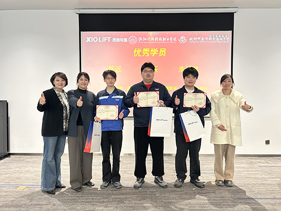 儀式現(xiàn)場進(jìn)行了培訓(xùn)成果的展示,以及培訓(xùn)優(yōu)秀學(xué)員的表彰。陸樂作為學(xué)生代表在儀式上發(fā)言,表達(dá)接受“中高企一體化”育人的感受:“在學(xué)校的學(xué)習(xí)中,我們更多接觸的是理論知識、基礎(chǔ)原理,是對專業(yè)的初步認(rèn)知和框架搭建,而來到西奧公司參與實操培訓(xùn),才真正感受到理論與實踐結(jié)合的重要性。”學(xué)校的課堂教會我們“是什么”,而公司的培訓(xùn)教會我們“怎么做”“如何安全地做”。這里沒有空洞的理論,只有實打?qū)嵉牟考碇v解、作業(yè)安全實操和規(guī)范流程,每一個操作細(xì)節(jié)、每一條安全準(zhǔn)則,都關(guān)系到設(shè)備運(yùn)行與人身安全,讓我們明白電梯行業(yè)從業(yè)者肩上的責(zé)任與擔(dān)當(dāng)。”他表示,這次企業(yè)的培訓(xùn)是對課堂學(xué)習(xí)成果的肯定,更是踏入電梯行業(yè)、開啟職業(yè)之路的重要起點,在今后的公司實習(xí)中,將在企業(yè)師傅的攜帶下,不斷業(yè)務(wù)精進(jìn),用專業(yè)能力為電梯行業(yè)的安全運(yùn)行和發(fā)展貢獻(xiàn)自己的力量。