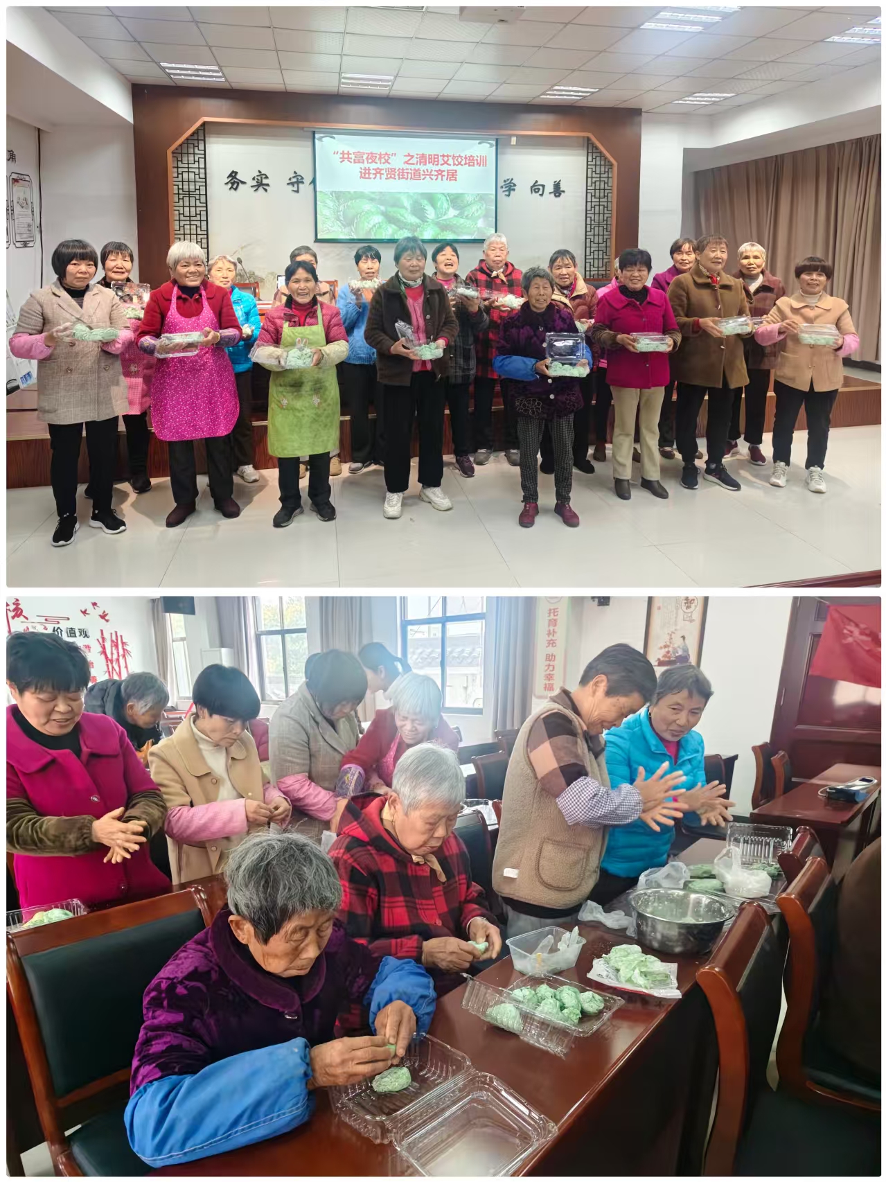 “清明承古韻,艾餃傳安康”,一年一度的清明節(jié)來臨之際,柯橋區(qū)齊賢成人文化技術(shù)學(xué)校送教進(jìn)村居文化禮堂,為村居居民們開展艾餃制作培訓(xùn)。