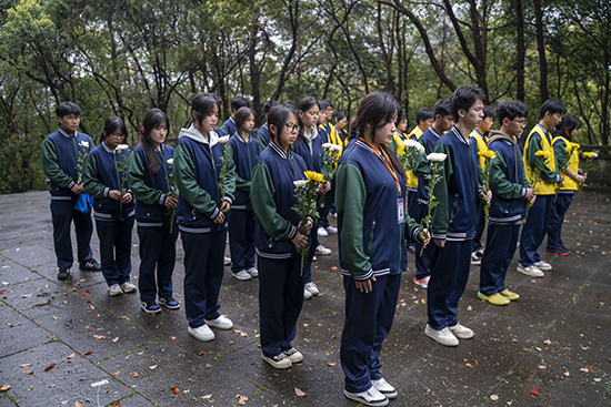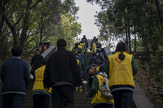 儀式伊始,全體人員面向烈士紀念碑肅立默哀一分鐘。同學們低頭垂首,深切追思先烈們為國家獨立、民族解放而英勇獻身的感人事跡。青山不語,豐碑無言,在這一分鐘的靜默里,歷史與現實交匯,每一位青年學子的心中,都悄然種下了一顆名為“家國”的種子。
