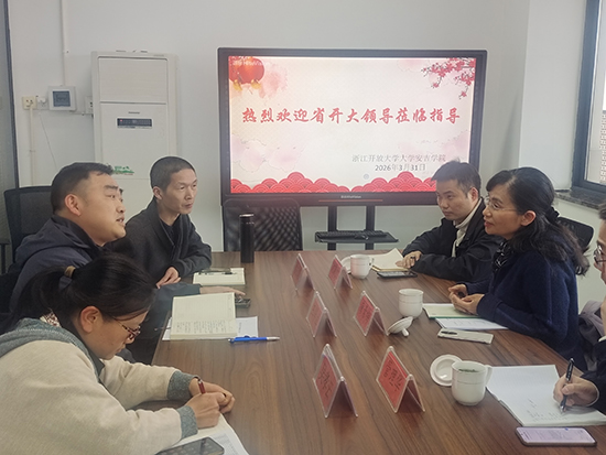 安吉學院招生辦主任吳孝云向調研組匯報了學院26春招生工作的進展和情況,王華立書記匯報了學院黨風廉政風險防控、校園廉潔文化建設等方面的工作開展情況,并就安吉學院招生工作目前存在的問題和困難與省開大領導進行深入交流探討。