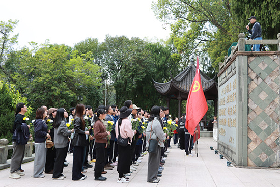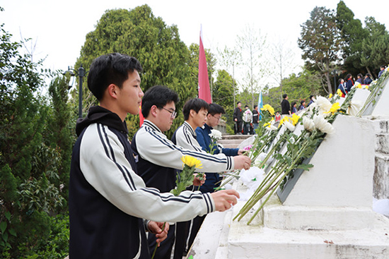 當(dāng)天下午,師生們整齊列隊(duì),懷著無比崇敬的心情步入莊嚴(yán)肅穆的烈士陵園。