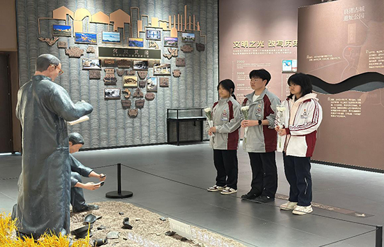 儀式結束后,師生們共同參觀紅色陳列館。在講解員的帶領下,大家認真觀看歷史照片、戰斗遺物和文獻資料,深入了解新四軍在余杭地區的英勇戰斗歷程。一件件實物、一段段故事,生動再現了革命先輩浴血奮戰、不怕犧牲的英雄氣概,讓同學們深受震撼和教育。