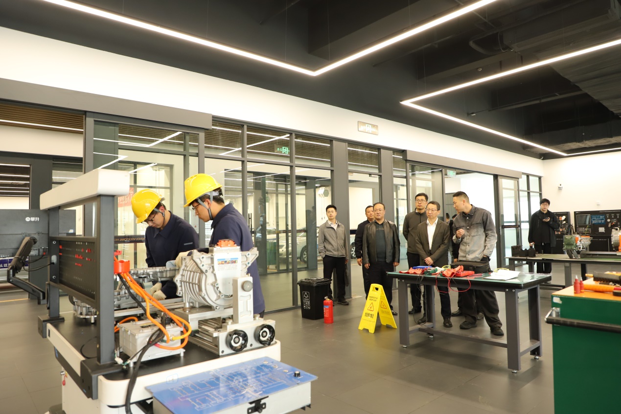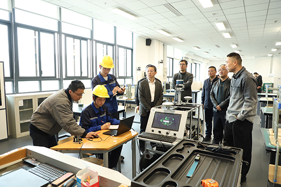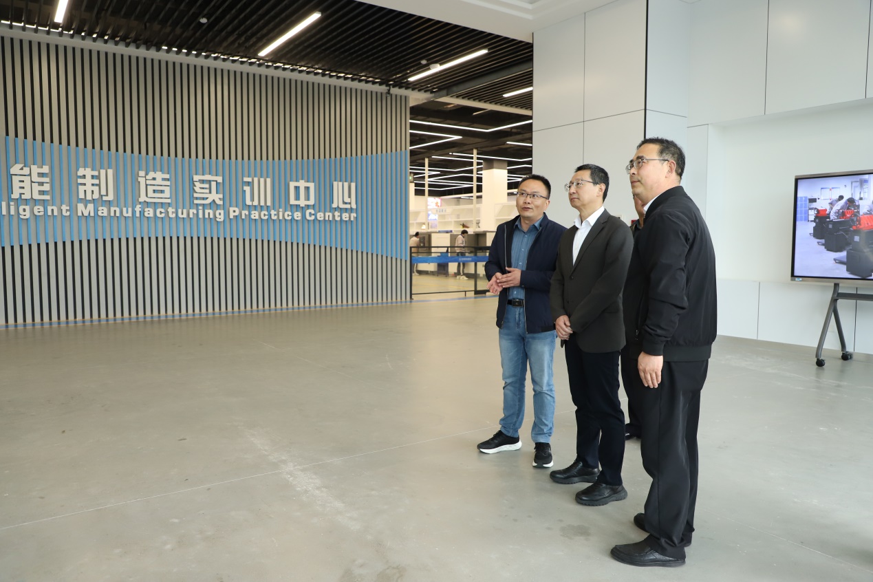 接下來,徐巖副市長一行前往1號實訓樓,調研智能制造專業群和交通運維專業群。徐巖副市長參觀了工業機器人、增材制造、新能源汽車、智能交通等實訓場地,詳細了解校企協同育人模式,對學校堅持“崗課賽證”融合、立足服務地方產業發展、推動教育鏈與產業鏈有機銜接等舉措給予肯定。