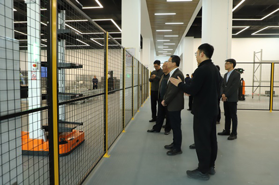 隨后,徐巖副市長一行來到2號實訓樓,實地調研供應鏈管理專業群綜合實訓基地。該基地集聚供應鏈管理與數字藝術相關專業,一樓建有智鏈生產物流實訓中心,配備智慧物流機器人、機器人調試系統和倉儲管理系統,在學生的演示下,徐巖副市長觀看了物料出入庫流程及生產模擬的場景,了解了實訓基地的產教融合開展情況。