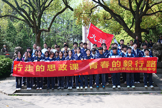 春風拂翠柏,清明寄哀思。為深入推進愛國主義教育,傳承紅色基因,4月2日上午,杭州市喬司職業高級中學依托“弘喬思政學堂”,組織高二年級“中高職一體3+2”班級學生,前往臨平山革命烈士紀念碑,開展“賡續紅色基因 毅行致敬先烈”清明祭掃毅行活動。大家以步為履,奔赴一場12公里的青春之約,開展一堂沉浸式“行走的思政課”。