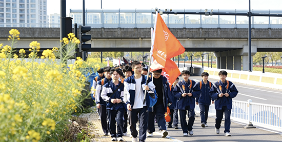 從校園到臨平山,12公里的征途,不僅是對體魄的考驗,更是對意志的磨礪。行進途中,師生們相互照應、彼此鼓勵,沒有一人掉隊。大家在行走中磨煉堅韌意志,將“健康第一”的理念落到實處,讓“弘喬思政學堂”的育人內涵在每一步腳下生根發芽。