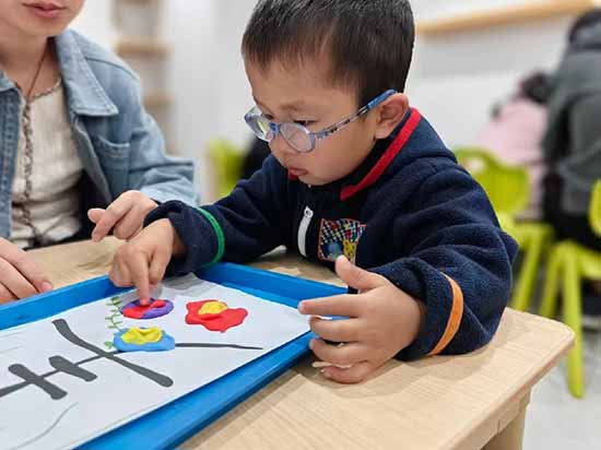 隨后的黏土手工環節,老師一步步耐心示范揉、搓、壓等基礎手法,指導家長與孩子攜手合作,共同制作春日花朵造型。親子間配合默契,小手大手協作創作,一朵朵色彩鮮亮、形態可愛的黏土花陸續成型,既鍛煉了幼兒手部精細動作,也讓孩子們在創作中感受春日美好,激發動手與創造興趣。