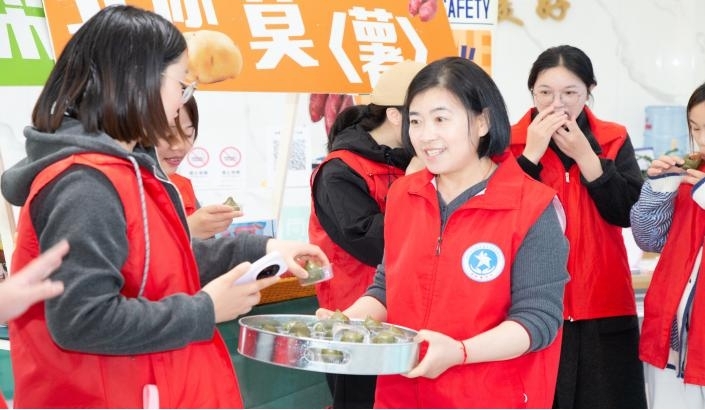 “聽(tīng)‘筧’星聲”公益音樂(lè)會(huì)環(huán)節(jié)更是溫情滿滿。向陽(yáng)樂(lè)隊(duì)奏響暖心旋律,工療員們勇敢登臺(tái)展示才藝。志愿者老師現(xiàn)場(chǎng)開(kāi)展非洲鼓演奏指導(dǎo),動(dòng)人的鼓聲既能愉悅心情,還能刺激手部血液循環(huán),助力身心療愈。這場(chǎng)專(zhuān)屬特殊群體的才藝展示,不僅讓他們收獲掌聲與肯定,更在舞臺(tái)上綻放自信光芒,充分體現(xiàn)社會(huì)對(duì)殘疾人的尊重、關(guān)愛(ài)與支持。活動(dòng)最后,東港社區(qū)的東鄰嫂與益筧藍(lán)軍嫂,將親手制作的腌菜與新鮮青團(tuán)送到現(xiàn)場(chǎng)的工療員手中,為他們的春日餐桌添上了一份“媽媽的味道”。