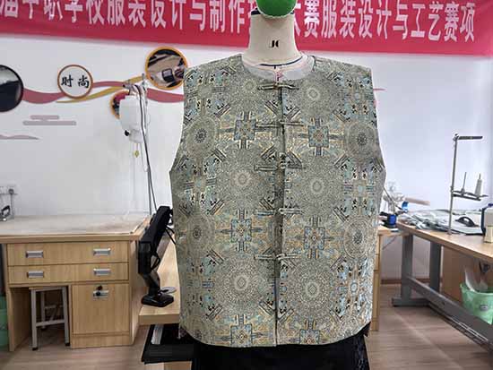 當(dāng)一件件融合東方美學(xué)與現(xiàn)代工藝的粉藍(lán)雙色中式馬甲成品呈現(xiàn)時(shí),同學(xué)們的成就感溢于言表。這些馬甲不僅是專業(yè)課程的作業(yè)成果,更是傳統(tǒng)文化與職業(yè)教育碰撞的結(jié)晶。滿繡精致花紋下,承載著同學(xué)們對(duì)傳統(tǒng)文化的敬畏與熱愛;雙面設(shè)計(jì)的巧思,展現(xiàn)了專業(yè)創(chuàng)新能力;針針細(xì)密的縫線,沉淀著日復(fù)一日的匠心堅(jiān)守。