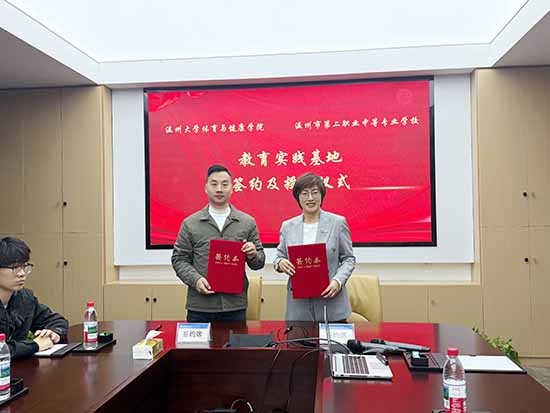 儀式環(huán)節(jié),雙方代表共同簽署合作協(xié)議。此次教育實(shí)踐基地的簽約,搭建起了高校與中職協(xié)同育人的橋梁,不僅為溫大體育專(zhuān)業(yè)學(xué)子提供了優(yōu)質(zhì)的實(shí)踐平臺(tái),也為二職注入了前沿的體育教育理念與專(zhuān)業(yè)資源,助力學(xué)校體育教育教學(xué)水平再上新臺(tái)階,實(shí)現(xiàn)共育新時(shí)代體育人才的美好愿景。(王佩佩)