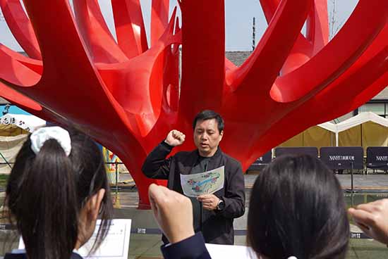 隊(duì)伍最終抵達(dá)南湖天地火炬雕塑處。紅色的火炬雕塑在陽(yáng)光下熠熠生輝,象征著革命精神的薪火相傳。全體師生在火炬前整齊列隊(duì),舉起右拳,發(fā)出“弘揚(yáng)‘兩個(gè)文化’”的青春誓言:“我宣誓:傳承紅色基因,賡續(xù)紅色血脈;守護(hù)江南文脈,弘揚(yáng)歷史文化……”鏗鏘有力的誓言在南湖畔回蕩,表達(dá)了新時(shí)代職教學(xué)子堅(jiān)定的文化自信與家國(guó)情懷。宣誓后,師生在火炬前合影留念,定格下這堂思政課的高光時(shí)刻。